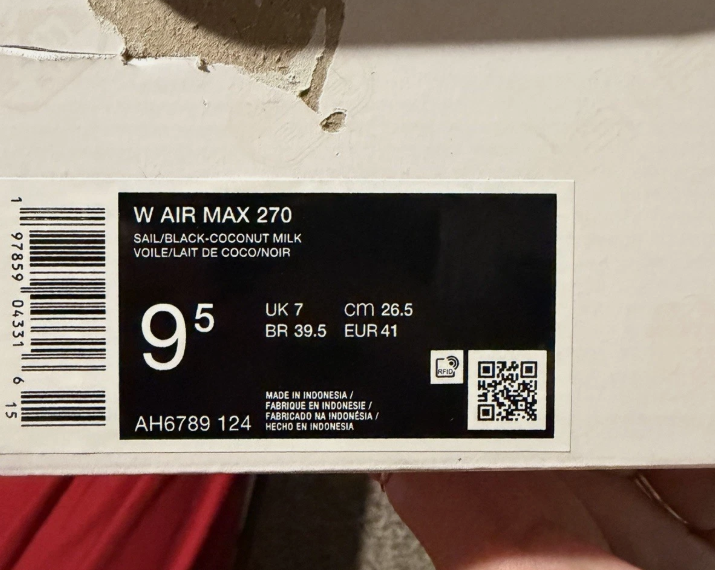 Size 9.5 - Nike Air Max 270 Coconut Milk W